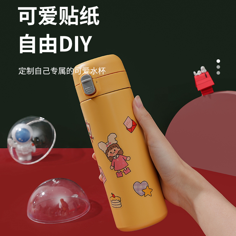 新款豌豆杯簡(jiǎn)約時(shí)尚便攜彈跳杯蓋車載保溫杯304不銹鋼DIY水杯直飲