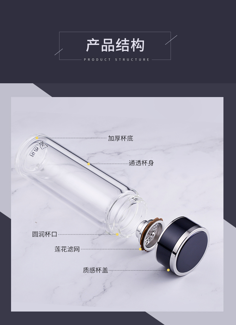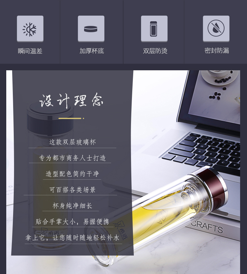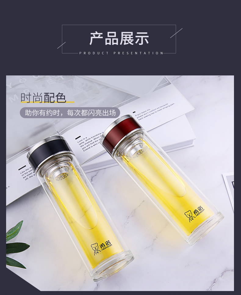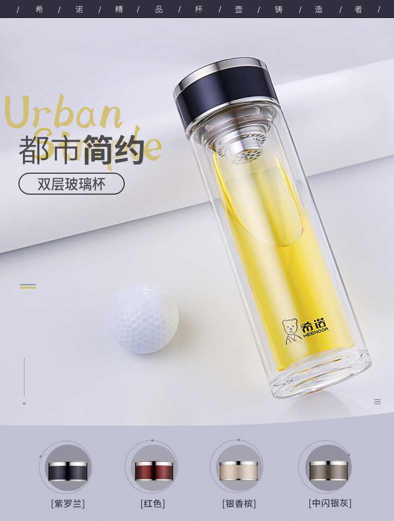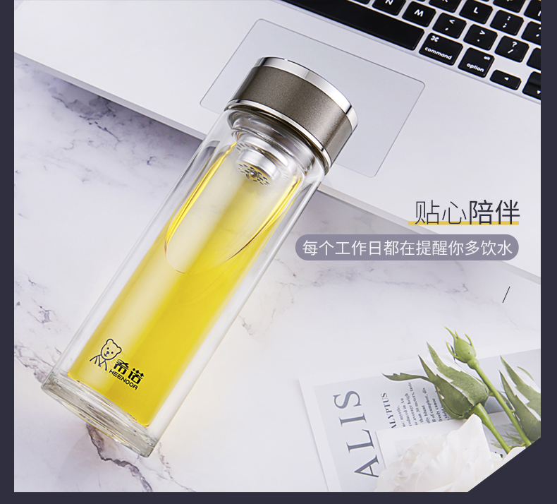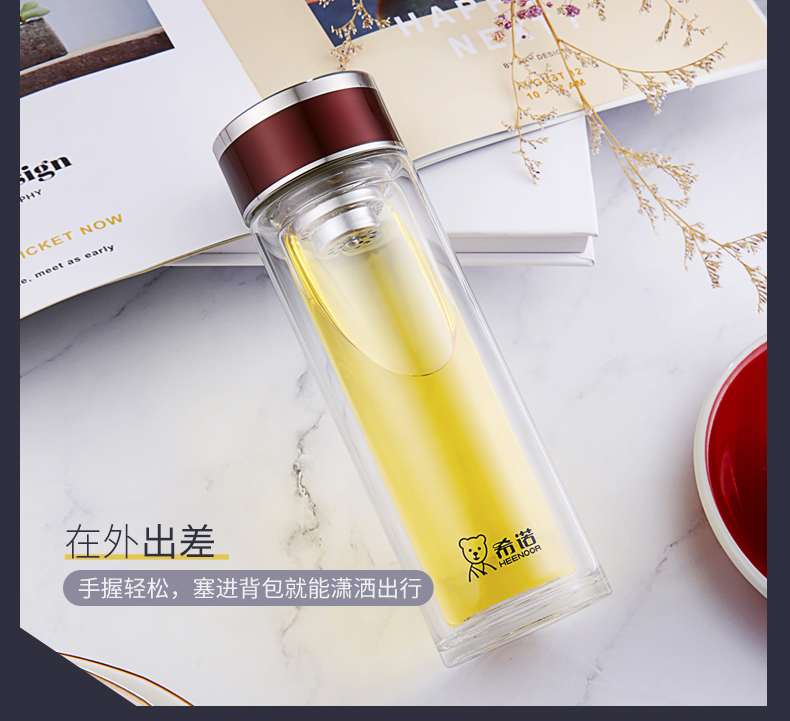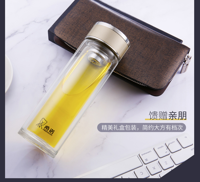 希諾玻璃杯旗艦店官網男女士雙層隔熱防燙商務簡約泡茶便攜水杯