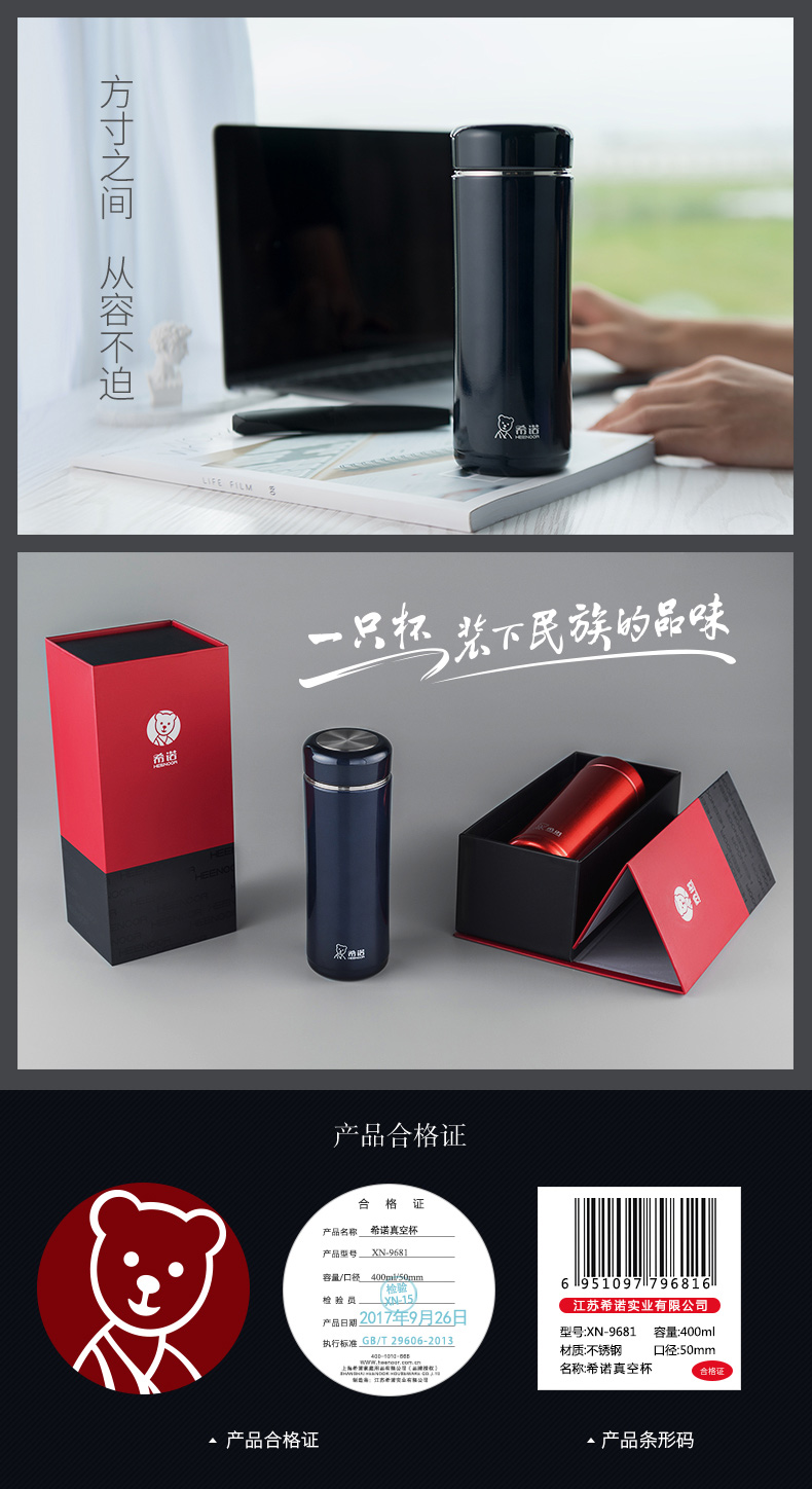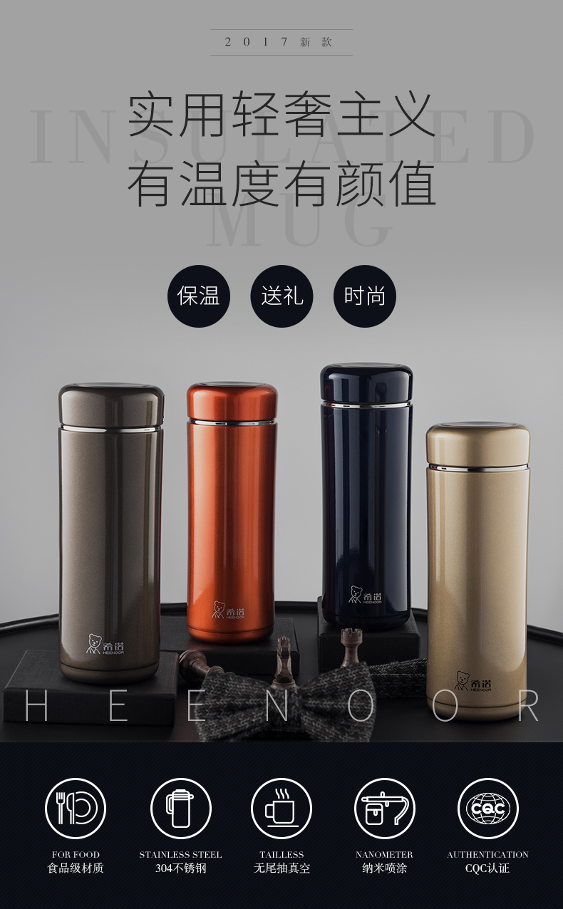 希諾保溫杯男女士大容量高檔商務茶杯304不銹鋼泡茶杯子便攜水杯