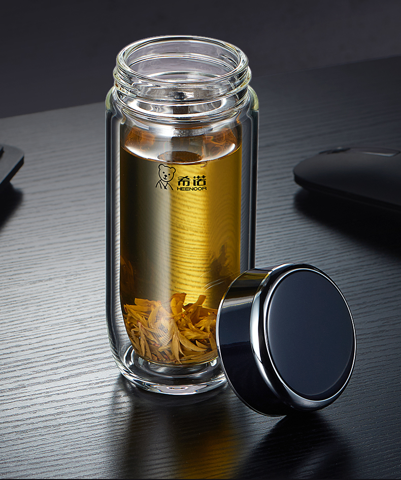 希諾雙層抗菌玻璃杯隔熱男女士高檔車載水杯便攜杯子帶濾網(wǎng)茶杯
